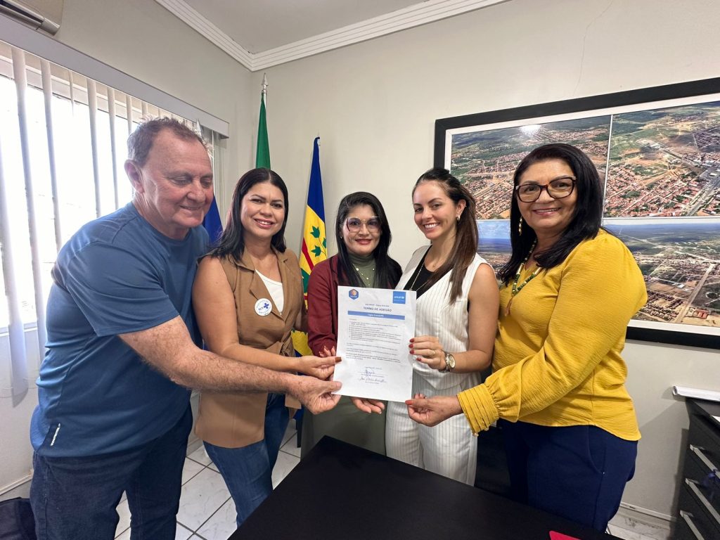 A assinatura da adesão ocorreu no gabinete da prefeita com a presença das secretárias de Educação, Joseilde Paulino; de Saúde, Ana Lúcia Araújo; de Assistência Social, Eliene Neri Martins; e do secretário de Governo, Jorge Garziera, além da articuladora do Selo Unicef em Lagoa Grande, Jucineide Marques.