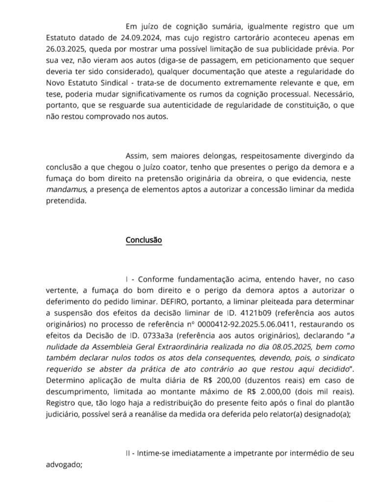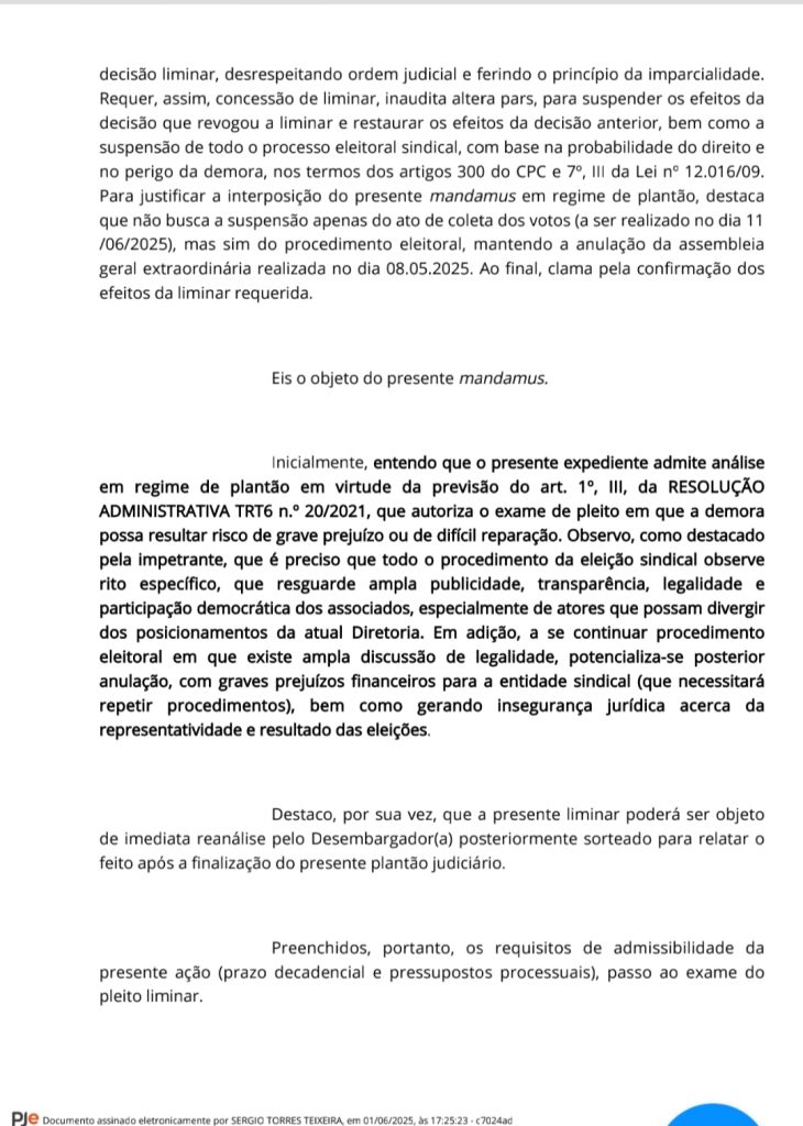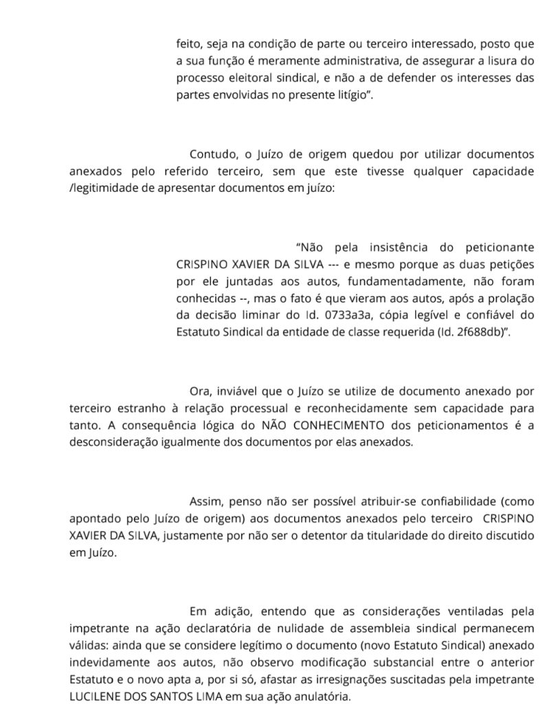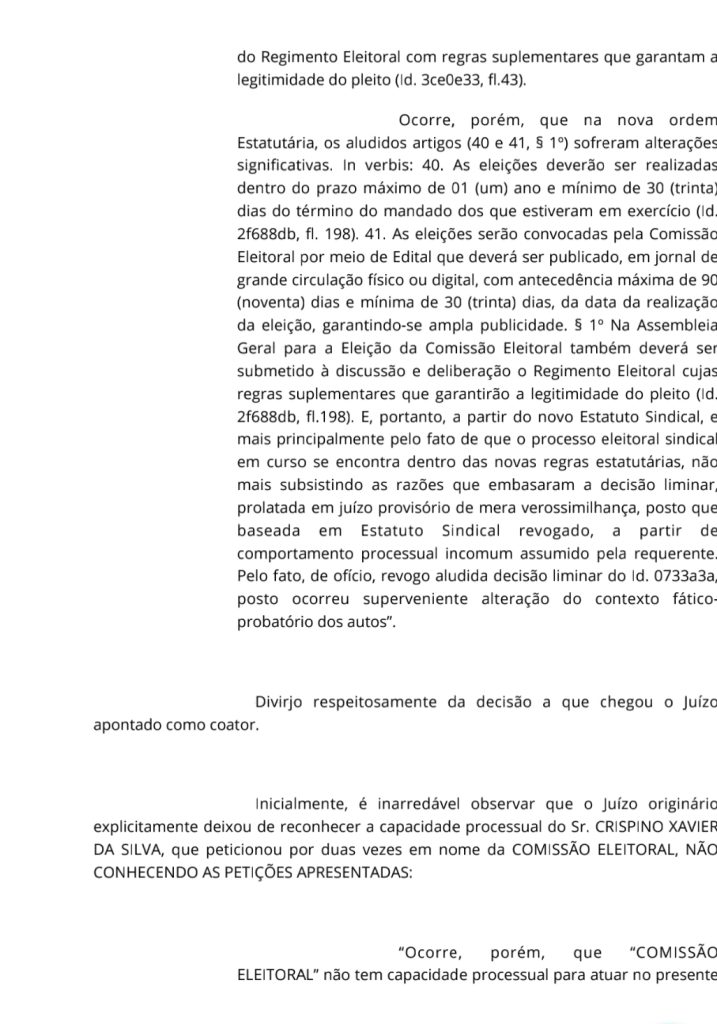 Joelma tinha conseguido cassar a liminar de Leninha na primeira instância da justiça do trabalho em Petrolina. A chapa de Leninha recorreu e derrubou a liminar do grupo de Joelma.
